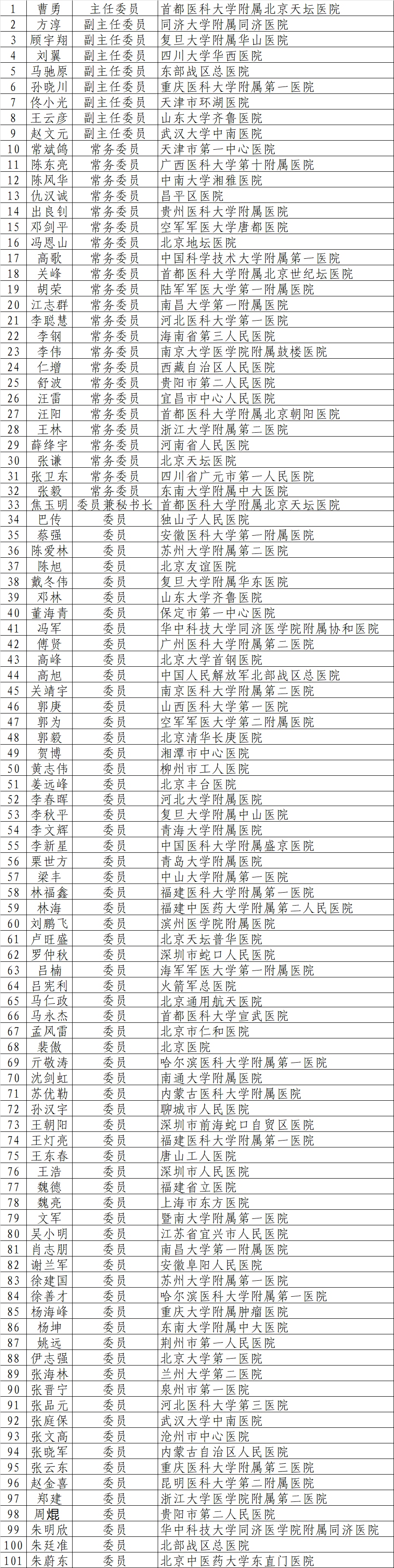 中国卒中学会复合介入神经外科分会第三届委员会委员名单